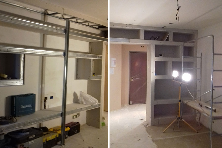 Librerie, controsoffitti, pareti attrezzate con illuminazione LED su misura.